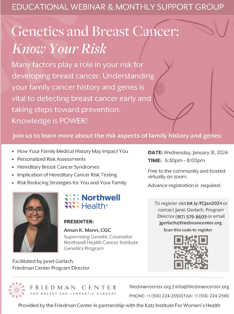 Genetics and Breast Cancer: Know Your Risk Wednesday, January 31, 2024 5:30 PM 6:30 PM 17:30 18:30 Liv & Let Chicago, IL 60618 (map) Google Calendar ICS Genetics and Breast Cancer: Know Your RiskJanuary 31, 2024 | 6:30 PM/ 5:30 PM (cst)Zoom Register