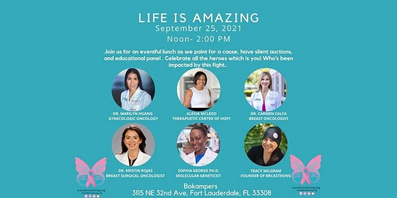 On September 25th, 2021 BRCASTRONG invites you to join us at our event “Life is Amazing” Who is amazing? You are! YOU are the heroes who have been impacted by this fight! Join us for lunch and paint for a cause, participate in silent auctions, raffles and learn about exciting innovations in health care from our educational panel! Life Is Amazing, join BRCAStrong and celebrate your progress with us!
