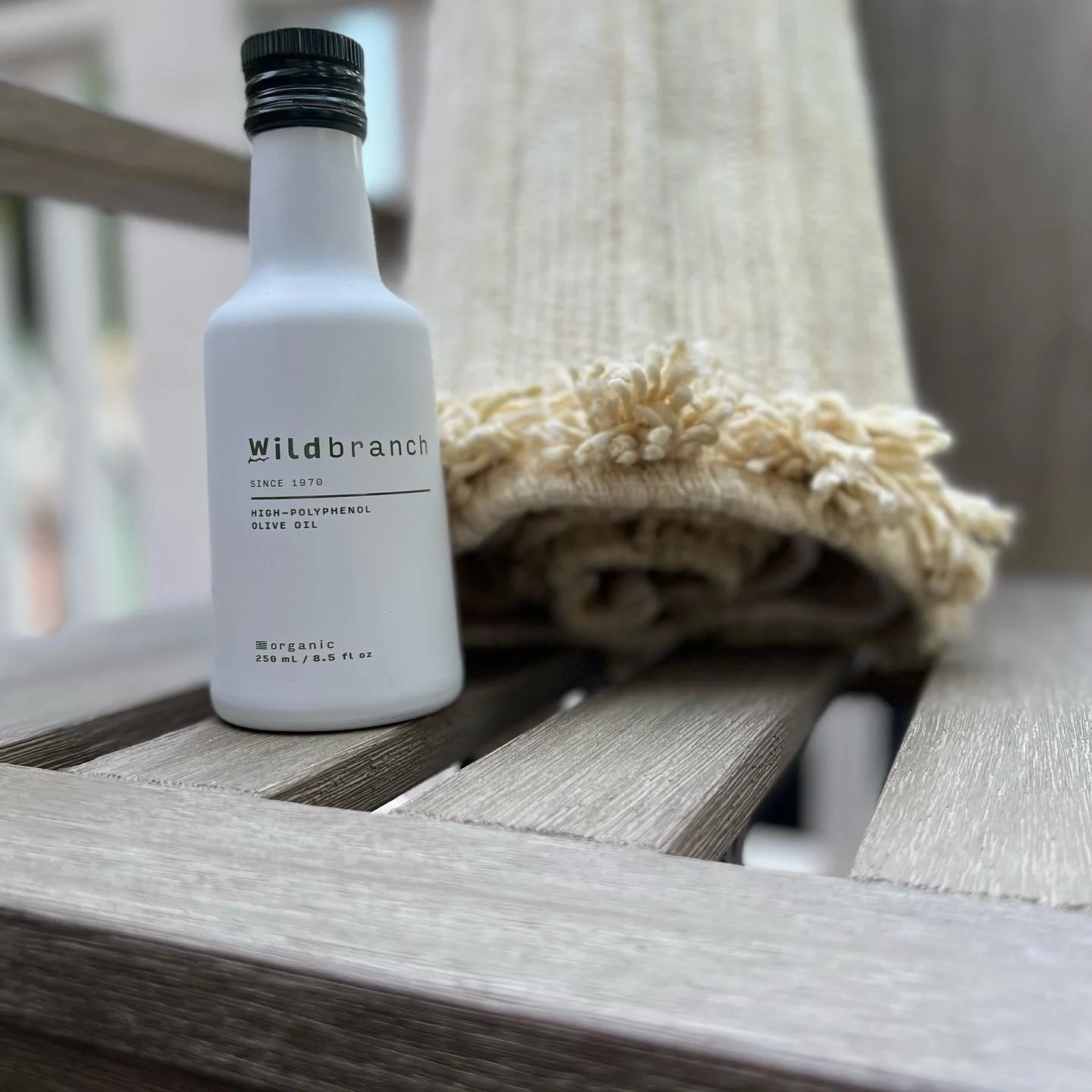 A 8.5 oz bottle of organic high-polyphenol oil. It is a simple, pure way to practice the Mediterranean lifestyle and feel the benefits. @welcometowildbranch